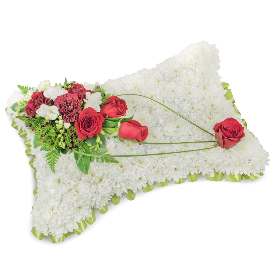 Send a message of solace and compassion with our Serene Condolence arrangement. This soulful bouquet is an artful blend of white chrysanthemums, red roses, white freesias, dark red carnations, dianthus, and bear grass, arranged with expert precision. Each flower is carefully hand-selected to deliver a bouquet that radiates freshness and enduring beauty.